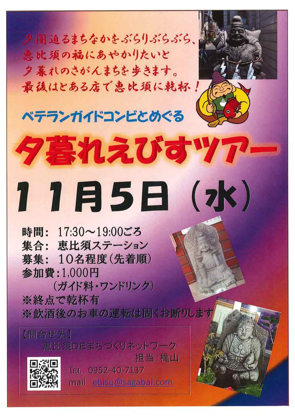 夕闇迫るまちなかをぶらりぶらぶら、恵比須の福にあやかりたいと夕暮れのさがんまちを歩きます。